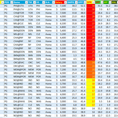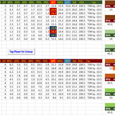 The data provided is purely 17-18 season situational data. The Daily NBA Team Matchup Sheet pulls the TOP Ten Players for each team. The higher the OPR rating the better the player situational matchup